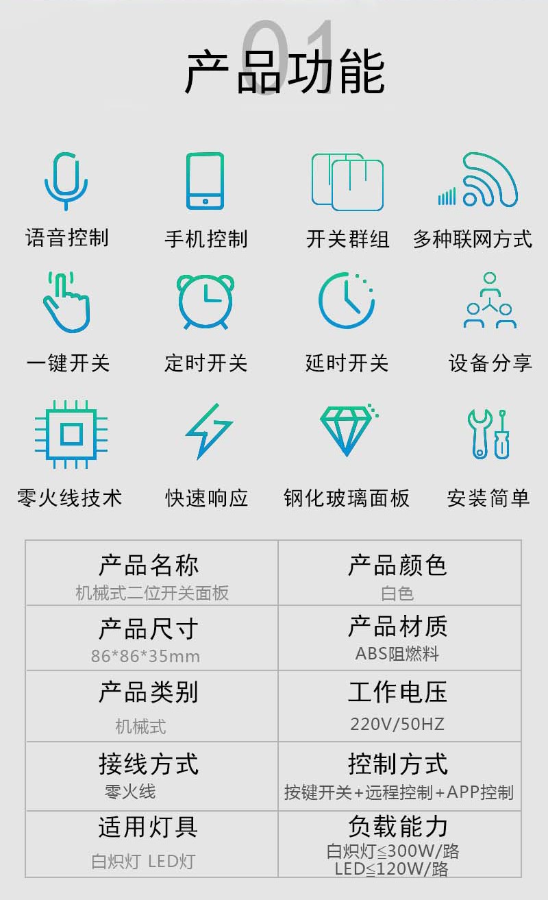 智能觸控機械式二位開關面板_百仕誠