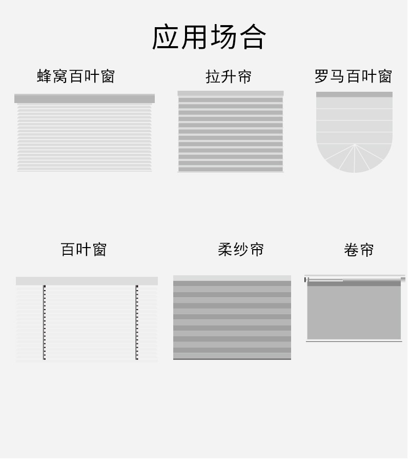 主要用于室內中空百葉,室內小型鋁、木百葉簾,具有電子限位功能,遙控內置,易于安裝與設置,降低工作量。廣泛應用于辦公大樓、會議室、家庭住宅的室內遮陽百葉簾等。